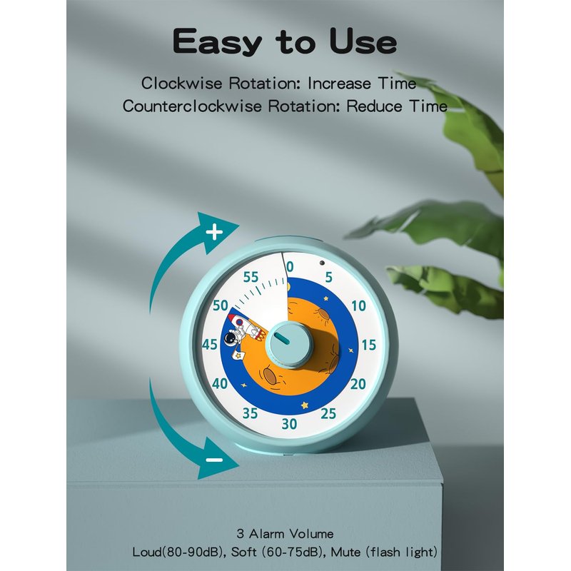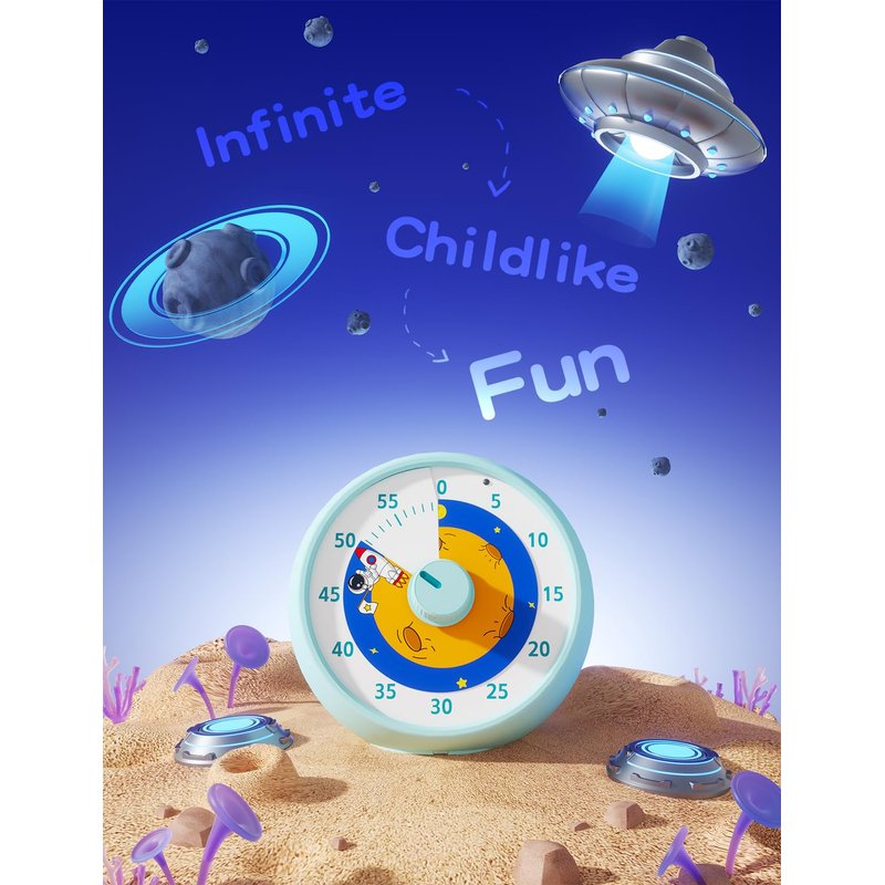 - Unique Pretty Design: What a cute and funny visual timer, which looks like a planet with rocket or astronaut. Such a creative design, whether a boy or a girl all are interested in it, they not only a countdown timer, but also be toys which to stimulate kids imagination of space.