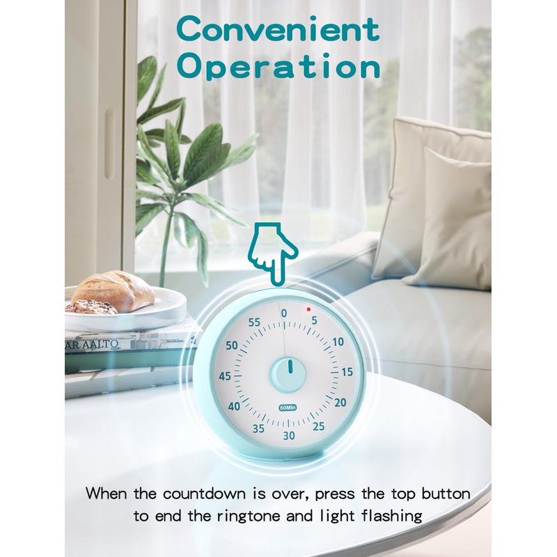 - Simple Operation: Rotate the middle knob of this visual timer, and no any more operation. When the timer ringing sounds or flash lights, click the button on the top of the timer to end the alarm or flash. The timer is very energy-saving. It only needs 2AAA batteries and can be used for more than 180 days.