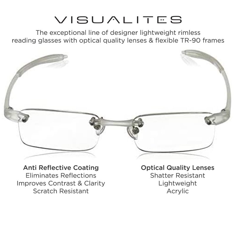 Visualites 1 Crystal 3.50 Power Lightweight Rimless Reading Glasses For Men and Women