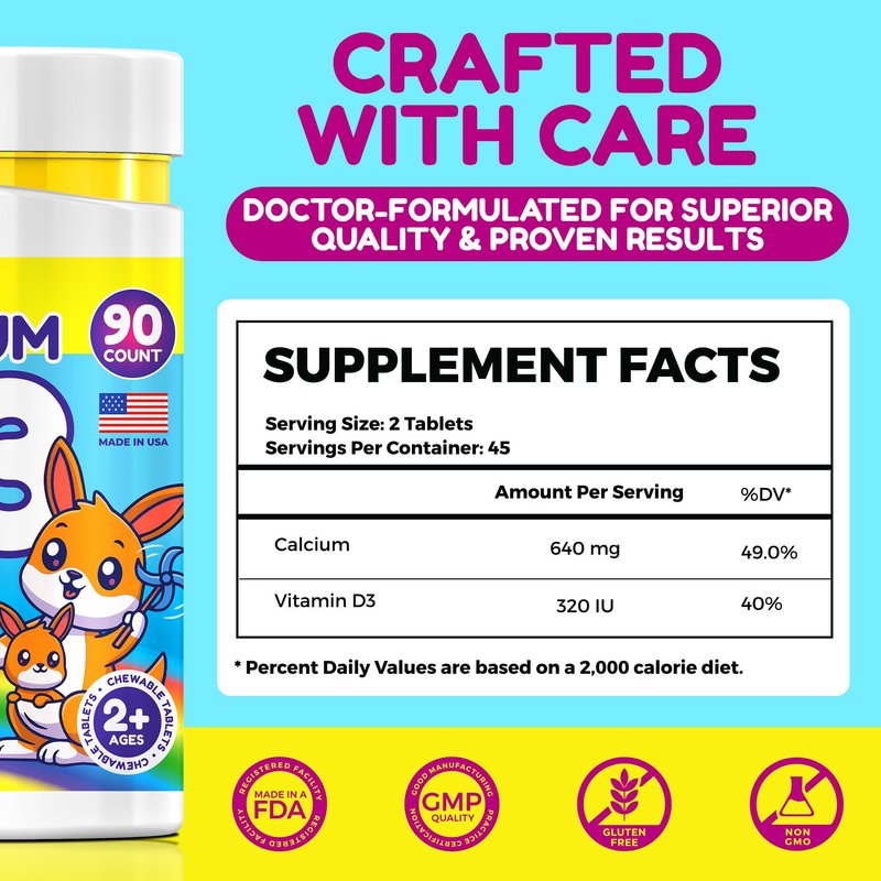 - 𝐊𝐢𝐝-𝐀𝐩𝐩𝐫𝐨𝐯𝐞𝐝 𝐌𝐢𝐥𝐤 𝐅𝐥𝐚𝐯𝐨𝐫: Delicious milk-flavored, oval-shaped tablets that make daily supplementation enjoyable and easy for kids aged 2 and up.