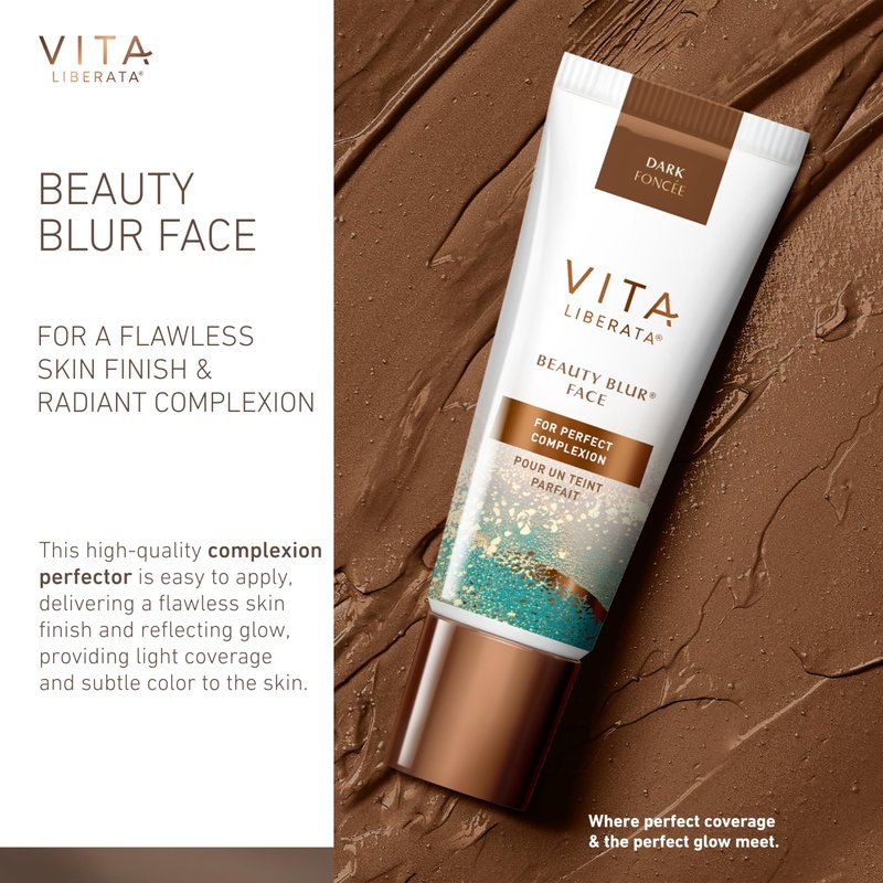 Vita Liberata Beauty Blur Face - Dark, BB Cream, Hydrating Skin Finish, Radiant Glow & Flawless Complexion, 1.01 fl oz