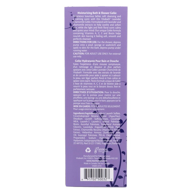 Vitabath Lavender Chamomile Moisturizing Bath & Shower Gel Wash Calming & Hydrating Botanical Skin-Softening Skincare, Body Cleanser & Foaming Gelee - 21 oz