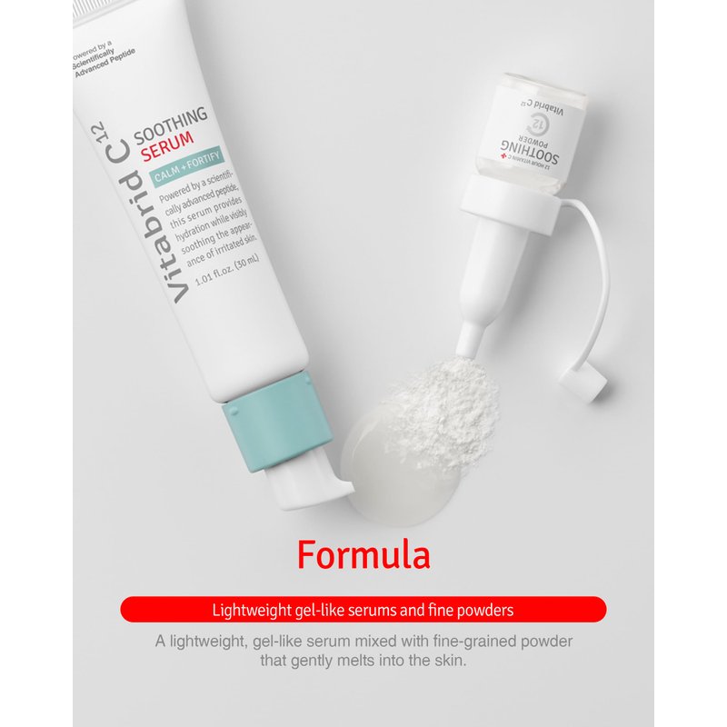 VITABRID C12 12 Hour Vitamin C Soothing Serum for Acne & Blemish-Prone Sensitive Skin - Improves Sebum, Pores and Redness - Peptides, Niacinamide, Madecassoside, 1.01 fl.oz. Powder 0.04oz.
