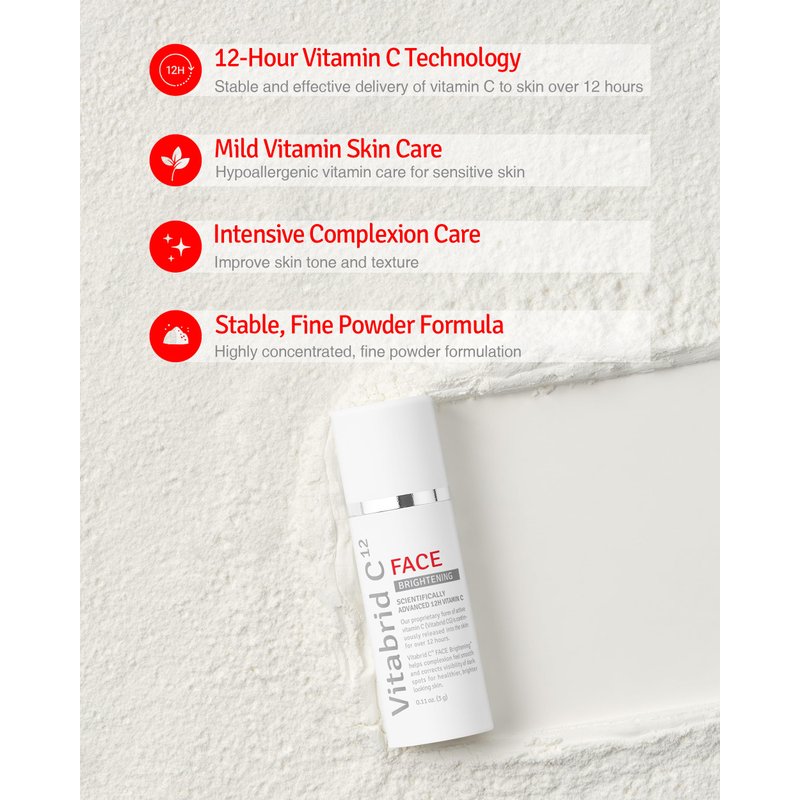 - ADVANCED INGREDIENT BLEND FOR OPTIMAL SKIN HEALTH: Vitabrid C12 Vitamin C Powder features our exclusive Vitabrid CG, which releases vitamin C continuously, enhancing collagen synthesis and antioxidant defense. It also includes Niacinamide for skin tone balance, Allantoin for soothing, Adenosine for firmness, and Acetyl Glucosamine to boost elasticity and reduce discoloration, creating a robust formula for vibrant, healthy skin.