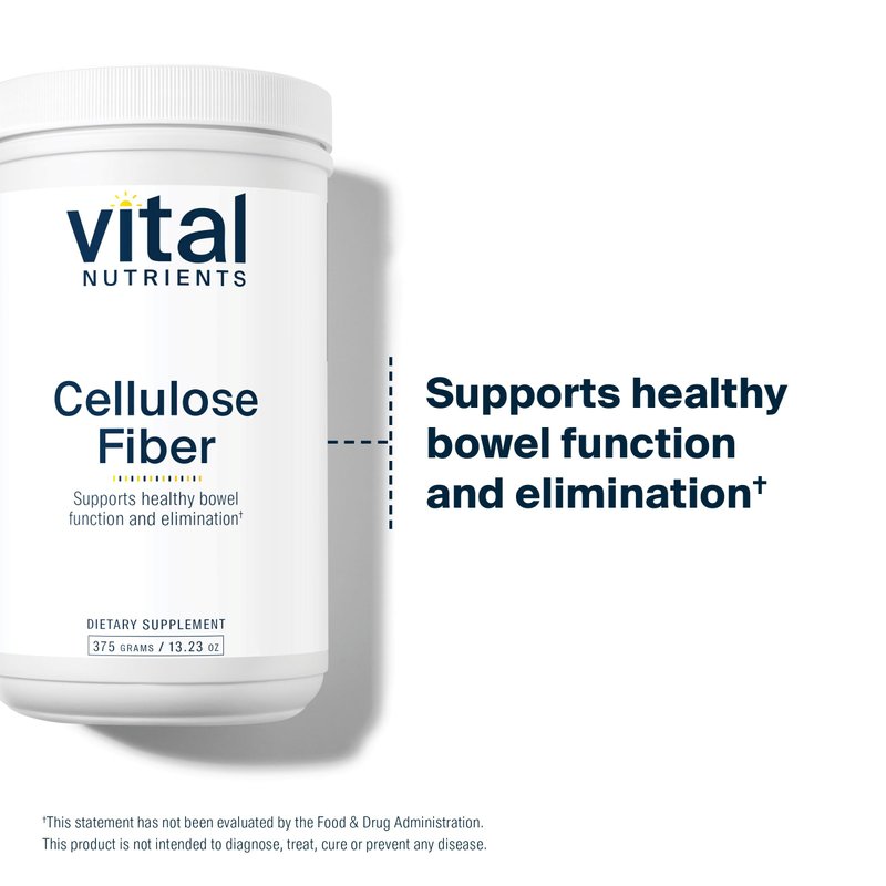 Cellulose Fiber provides 15 grams of insoluble fiber per serving. This particular type of fiber helps increase stool bulk, promote normal daily bowel function, and support the elimination of toxins by promoting movement through the colon. In addition to supporting gastrointestinal health, fiber also helps promote overall health, along with satiety. Because insoluble fiber is non-fermentable in the gut, it is less likely to cause gas or bloating. Cellulose Fiber is tasteless, and easily mixed in water or added to your favorite smoothie. Vital Nutrients is dedicated to manufacturing high-quality supplements that promote general health and vitality. Our stringent standards and extensive laboratory analyses have led to our supplements being used and trusted by hospitals, healthcare practitioners and consumers worldwide. Nothing is more important than the quality of our supplements. Vital Nutrients products may help support specific health concerns, as well as complement an existing healthy lifestyle. And because we independently test each and every raw material and finished product at U.S. labs, purity and potency can be guaranteed in every capsule.