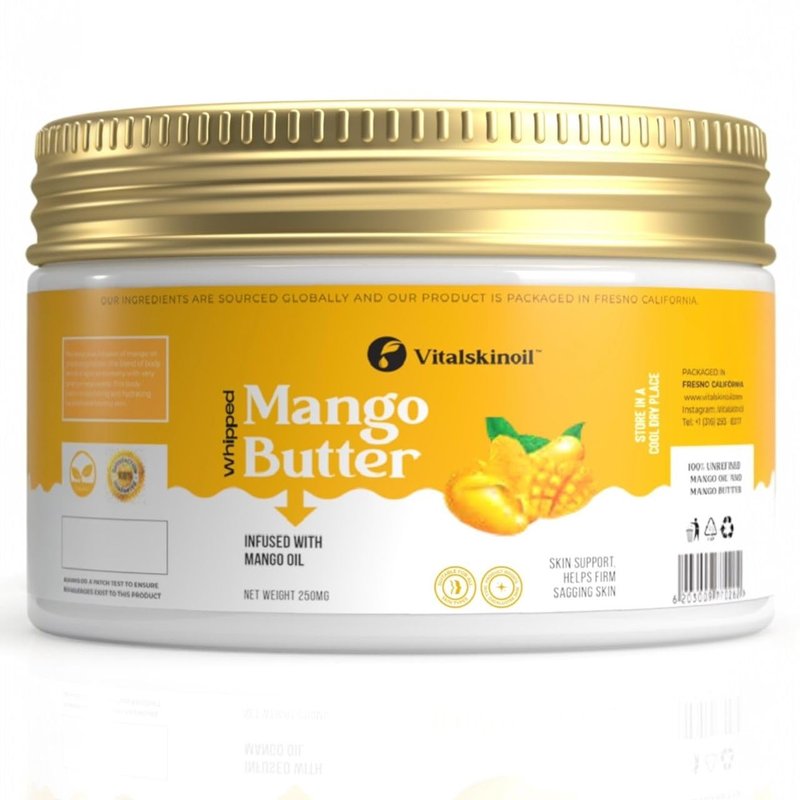 - Skin Benefits, Youthful and Healthy: Mango seed butter is packed with vitamins A, C, and E, mango butter helps soothe inflammation, promote collagen production, and protect against environmental stressors.