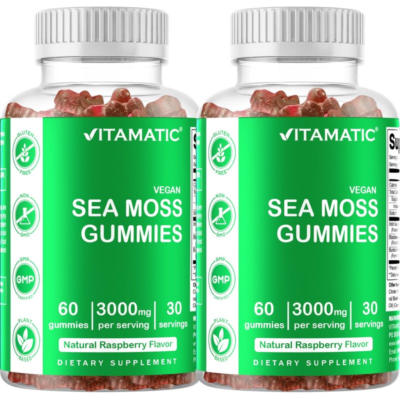 Vitamatic 2 Pack Irish Sea Moss Gummies - 3000 mg - 60 Vegan Gummies - Made with Bladderwrack & Burdock Root - Seamoss Supplement for Thyroid, Energy, Immune Support