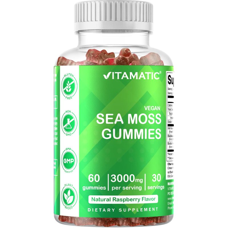 - DELICIOUS NATURAL RASPBERRY TASTE of Vitamatic Sea Moss Gummies - Avoid consuming Large Sea Moss Capsules, Tablets or Pills which gives unpleasant after taste & cannot go down easily