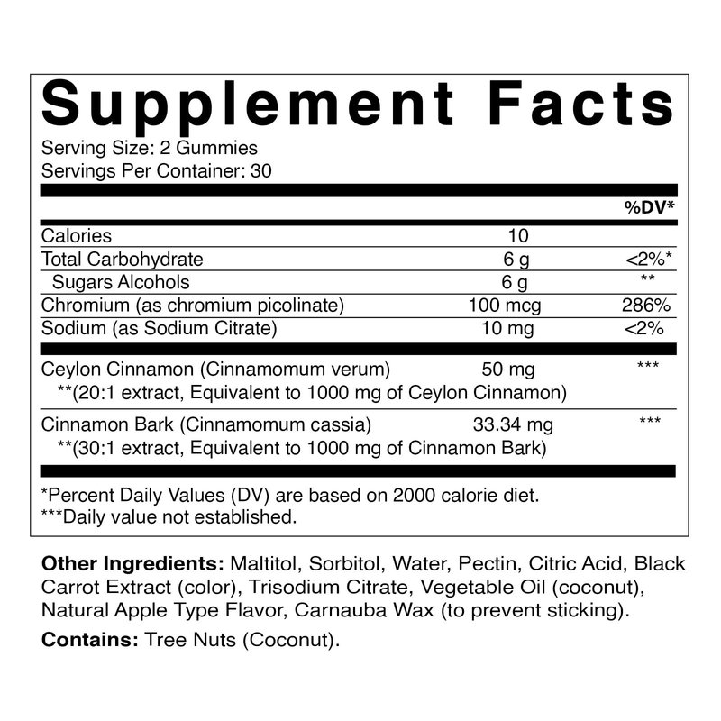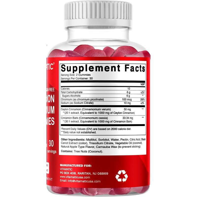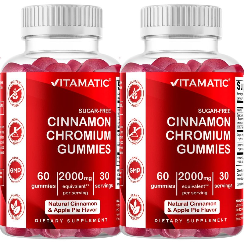 Vitamatic Sugar-Free Chromium Gummies with Ceylon Cinnamon – 2000 mg Equivalent Per Serving (from Extract 83 mg) – Non-GMO, Gluten-Free – 60 Vegan Gummies – 2 Pack
