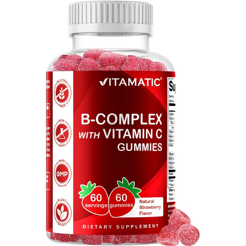 Vitamatic Vitamin B Complex Gummies with Vitamin C & Inositol - Natural Strawberry Flavor - 60 Gummies