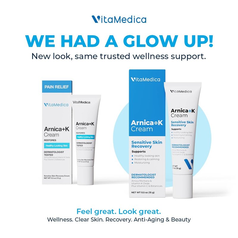 VitaMedica Arnica Cream - Arnica Montana + Vitamin K Oxide Bruise Cream - Sensitive Skin Formula - Undereye Arnica Vitamin K Cream With Vitamin C - 0.5 ounces