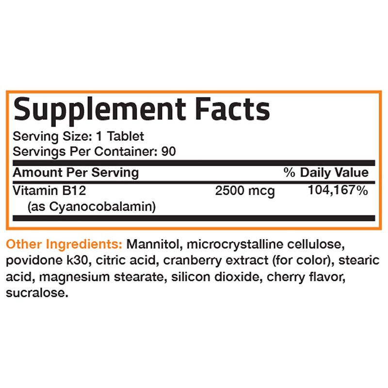 Vitamin B12 2500mcg Shot of Energy Fast Dissolve Chewable Tablets - Quick Release Cherry Flavored Sublingual B12 Vitamin - Supports Nervous System, Healthy Brain Function Energy Production – 90 Count