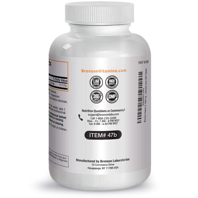Sometimes known as ascorbic acid, vitamin C is a water-soluble vitamin found in such foods as citrus fruits, green and leafy vegetables, tomatoes and cauliflower. One of the most antioxidant-rich nutrients, Vitamin C or ascorbic acid, is essential for overall well-being and a healthy immune system. This is particularly important as we age, as our ability to absorb this water-soluble nutrient may be affected by medications and/or health issues. If you’re not getting enough from the foods you eat, then supplements can help make up the difference. Taken daily, this bioavailable 1,000 mg Vitamin C formula can help maintain balanced levels of Vitamin C. Vitamin C 1,000 mg as Ascorbic Acid provides a solution to help sustain healthy amounts of this essential nutrient. This 1,000 mg Vitamin C formula contains our highest levels Vitamin C for optimal well-being in just one tablet per day. Bronson offers a full line of vitamin C products for you to choose from, including our high-potency Vitamin C 1,000 mg, which comes in a bottle of 250 tablets for peak immunity support.*