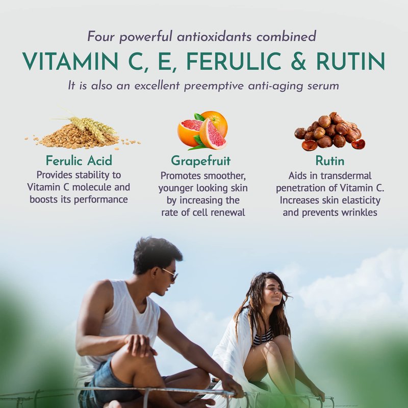 Vitamin C E Ferulic Rutin Facial Serum | 4 Powerful Antioxidants Combined For Most Stable, High Performing Facial Serum | Nourishing without Sticky Mess for Women & Men