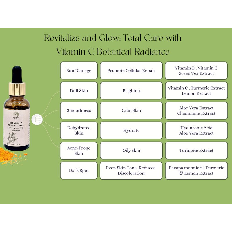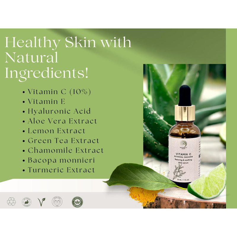 At Botanique Bliss, we believe in providing you with skincare that's not only effective but also pure and ethical. Our Vitamin C Botanical Radiance is vegan and natural, ensuring you get the best of nature without compromise. Experience the transformative power of Vitamin C with our Vitamin C Face Serum - the ultimate solution for achieving radiant, youthful skin. Unleash the benefits of this potent antioxidant, carefully formulated to give you the most effective skincare experience available on the market. Our serum is more than just a beauty product; it's a commitment to healthier, glowing skin. Unlock the natural radiance of your skin with Vitamin C Botanical Radiance by Botanique Bliss. Embrace the beauty of nature and reveal your inner glow with every application. Elevate your skincare game and let your skin shine with our Vitamin C Face Serum for Brightening and Hydrating. Embrace a brighter future for your skin today! Experience Vitamin C Botanical Radiance today – your journey to healthier, more radiant skin begins here. Discover the beauty of Botanique Bliss, where nature meets skincare perfection. Unlock your skin's potential. Order now and experience the transformative power of Vitamin C.