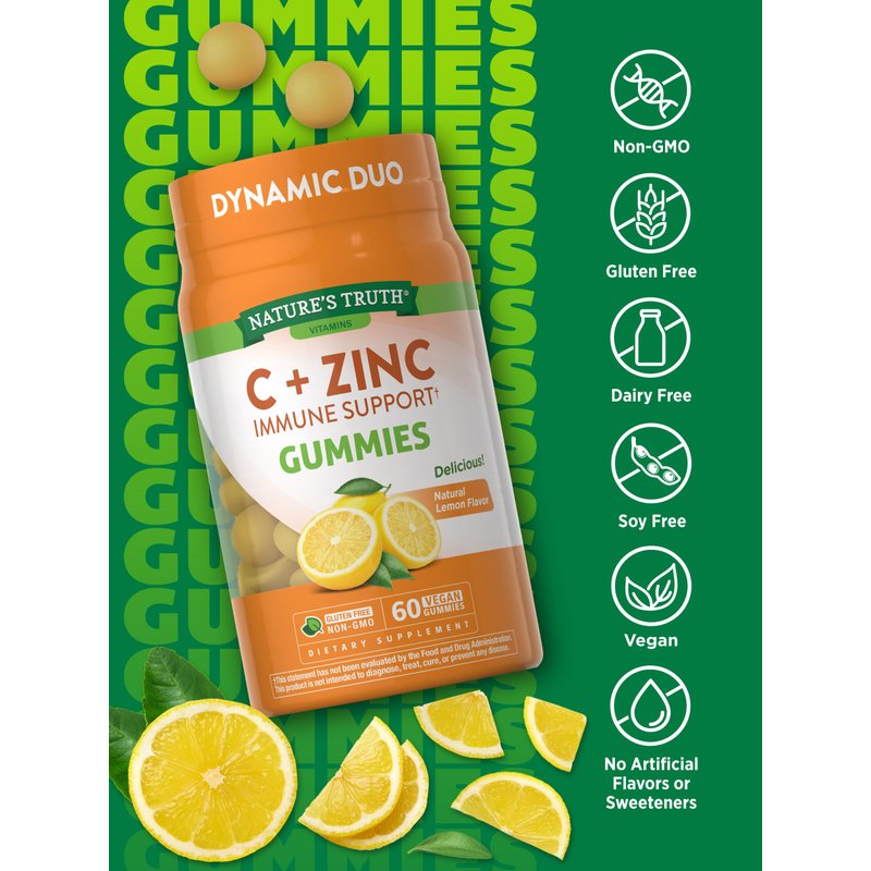 Vitamin C Gummies with Zinc for Adults | 60 Count | Immune Support Supplement | Vegan, Non GMO & Gluten Free | by Natures Truth