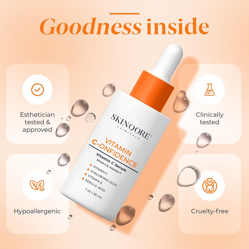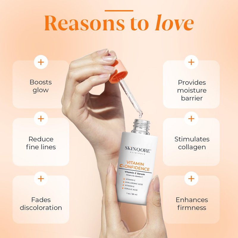 Make Your Skin a Priority with Replenishing Skinqore Vitamin C-onfidence Facial Serum Your skin is under constant duress from the elements, the environment, and even your makeup. All three dry out and damage your skin, especially if you aren’t properly hydrating and moisturizing every pore. We developed Skinqore Vitamin C-onfidence as an all-in-one facial serum with Vitamin C and E, as well as hyaluronic acid, so you can turn back the hands of time and regain your skin’s youthful clarity, firmness, and vibrance. Perfect for diminishing fine lines and wrinkles, reducing discoloration and dark spots, and giving you back suppleness and an even skin tone, this is a must-have skincare solution for anyone tired of looking tired and ready for complete rejuvenation.