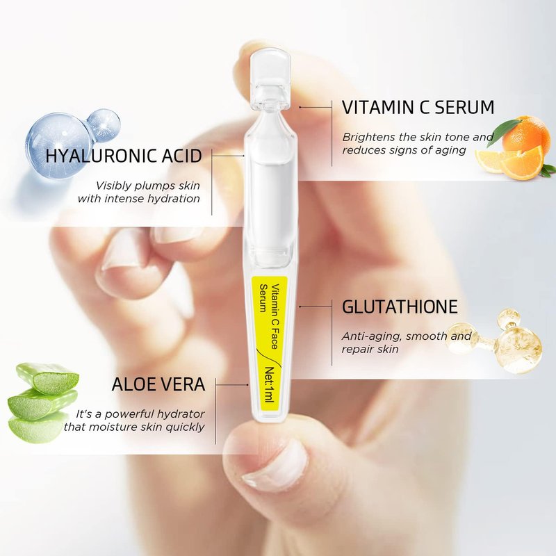 Vitamin C Serum for Face with Hyaluronic Acid, Glutathione, Organic Aloe Vera, Hydrating & Brightening Serum, Dark Spot Remover, Anti Aging Facial Serum, 15 Pcs/Box Ampoules