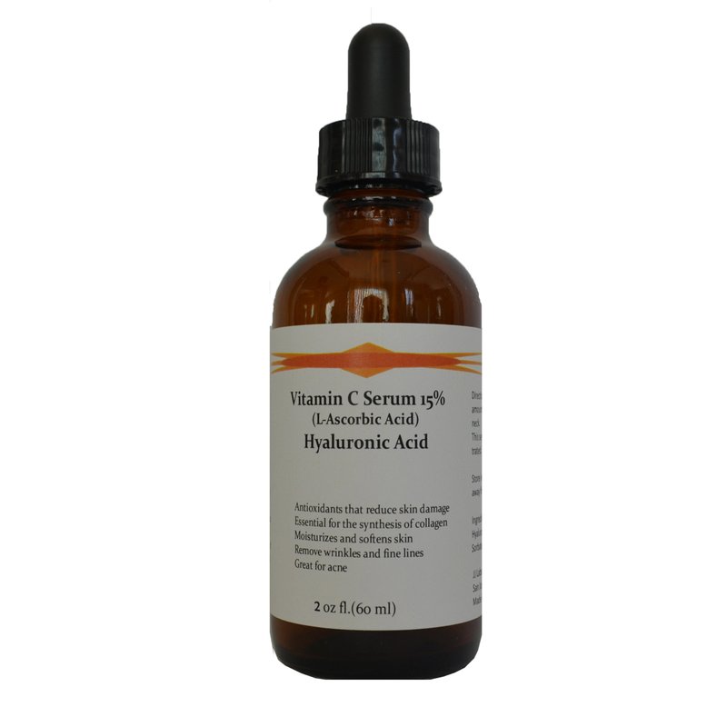 - Vitamin C 15% Serum with pure hyaluronic acid gives fullness to the face, eases wrinkles and fine lines, aids in collagen formation, increases skin elasticity, and leads to smoother, firmer skin. It is recommended for all skin types.