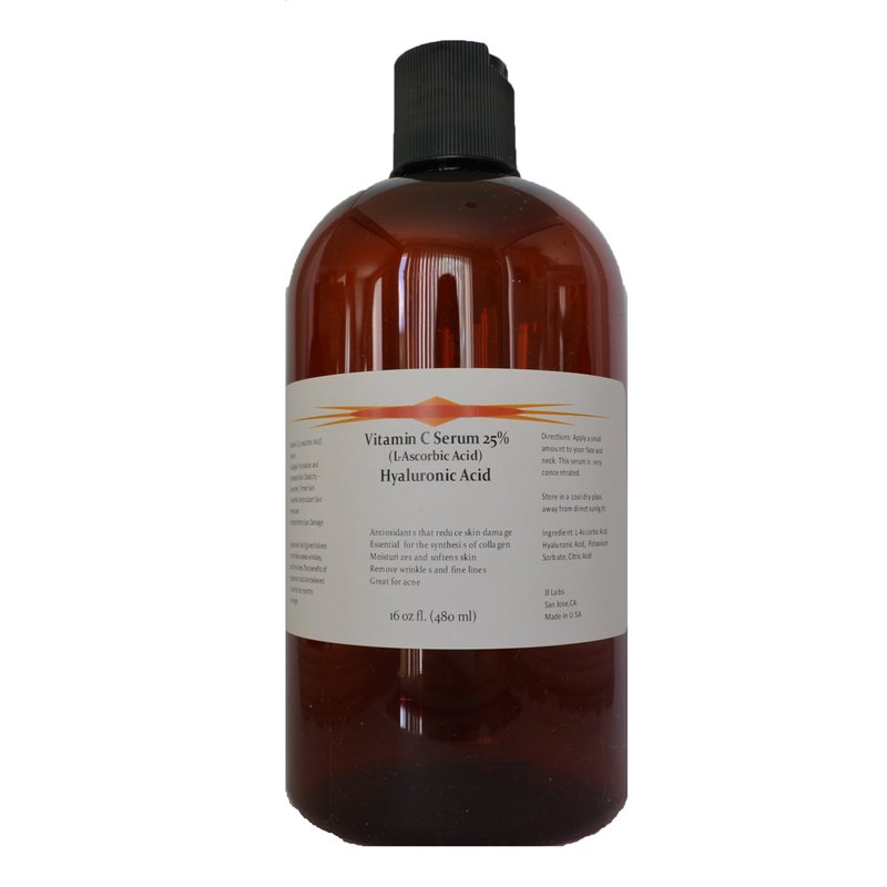 Vitamin C Skin Serum 25% (L-ascorbic Acid) with Pure Hyaluronic Acid Anti Aging Serum (16oz)