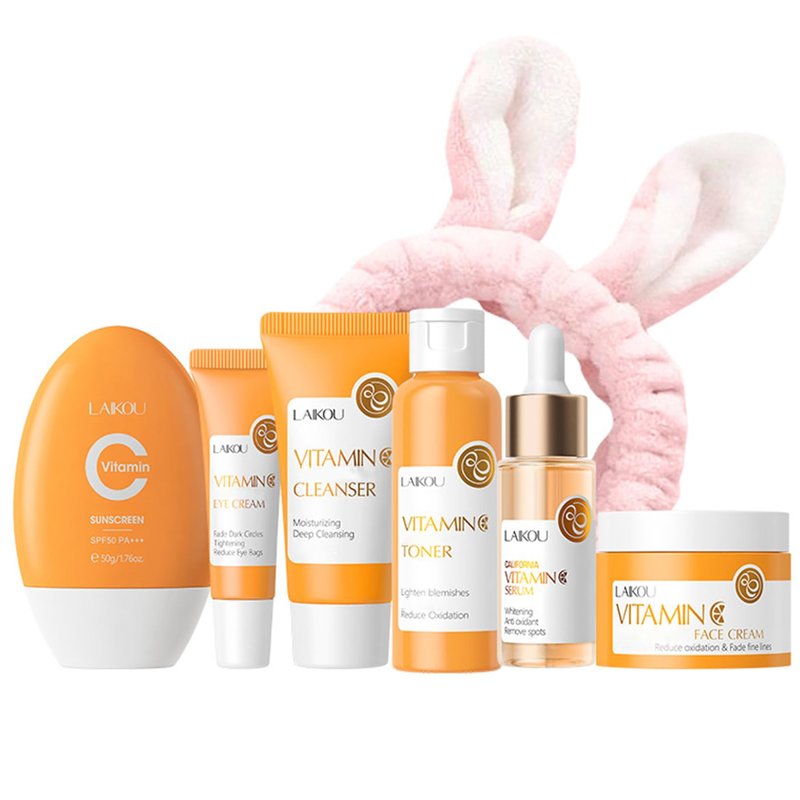 Product Quantity:Vitamin C serum, face cream, eye cream, cleanser, toner, sunscreen