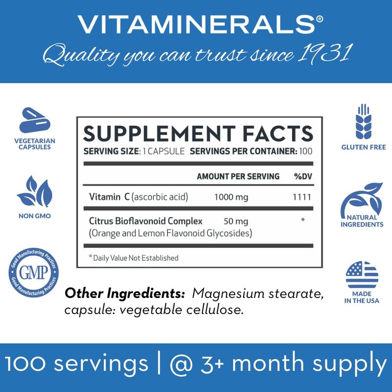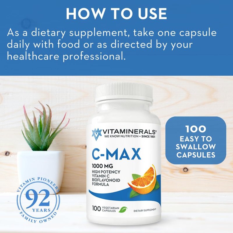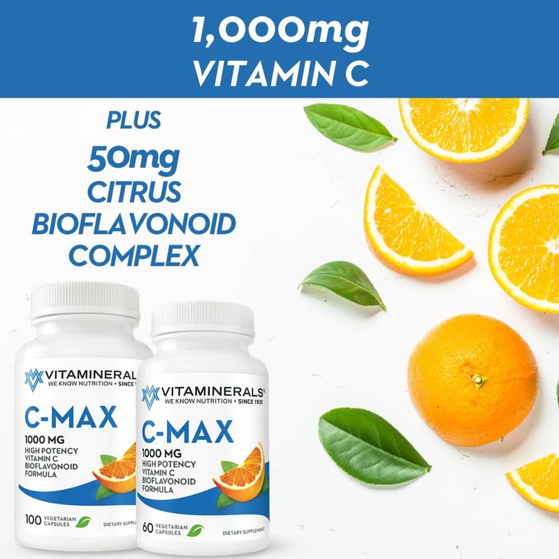 Vitaminerals C-MAX | 1000mg Vitamin C | Citrus Bioflavonoids | 100 Veggie Caps