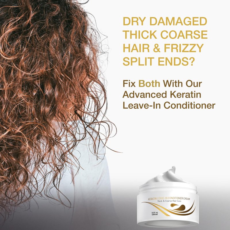 Ultimate Keratin Leave-In Conditioner for Thick Coarse Hair: Achieve salon-quality results at home with our Keratin Leave-In Conditioner, specifically designed for thick, coarse, curly, and wavy hair. This ultra-hydrating formula provides deep moisture, leaving hair soft, silky, and easy to style. Whether your hair is natural, relaxed, or color-treated, our no-rinse leave-in conditioner offers intense hydration and helps restore dry, brittle, and damaged hair. Enriched with keratin and natural oils, this moisturizing leave-in conditioner penetrates deep into the hair shaft, providing long-lasting moisture for dry, frizzy, and coarse hair. It’s perfect for maintaining healthy curls while taming frizz and flyaways. The alcohol-free, sulfate-free, and paraben-free formula ensures your hair stays smooth and manageable, with no harsh chemicals to weigh it down. Our anti-frizz technology locks in moisture, making it the best frizz control leave-in treatment for thick, curly, and wavy hair. It provides a smoothing, frizz-free finish for damaged and color-treated hair, giving you the ultimate salon blowout look at home. Perfect for ethnic hair or coarse frizzy hair, this keratin-enriched leave-in conditioner delivers shine and gloss while repairing split ends and protecting against breakage. Detangle with ease using this weightless detangler for thick, curly, and wavy hair. Our formula is specifically crafted to make thick hair easy to manage while enhancing curl definition and volume. Whether your curls are bouncy or loose waves, this curl-defining leave-in conditioner brings out the best in your hair, providing soft, shiny, and voluminous curls with every use. For those with chemically treated, relaxed, or damaged hair, our protein-rich leave-in conditioner strengthens and repairs weak strands. It acts as a hair breakage repair treatment, ensuring healthier, stronger hair with each application. This protein treatment is perfect for reinforcing coarse and damaged hair, restoring moisture and repairing damage caused by styling or environmental factors. Looking for a shine-boosting leave-in conditioner? Our formula enhances shine and gloss, leaving your hair with a sleek, shiny finish. It’s a gloss-enhancing, volumizing treatment for those who want fuller, bouncier curls and frizz-free hair that looks and feels healthy. The lightweight formula ensures your hair maintains natural movement while adding body and volume without the greasy residue. This cruelty-free conditioner is packed with keratin, natural hair oils, and botanical extracts, ensuring your hair gets the nutrients it needs for long-lasting health and beauty. Our sulfate-free and paraben-free leave-in conditioner is gentle enough for color-treated hair while providing the deep hydration your hair craves. Whether you need a leave-in curl cream, anti-frizz treatment, or a detangler for thick, wavy, or coarse hair, this product covers all your needs. Suitable for black hair, ethnic hair, curly hair, and wavy hair, this leave-in conditioner is the perfect solution for anyone looking to tame frizz, define curls, and add moisture and shine. It's ideal for everyday use as a moisturizing leave-in cream that softens and detangles hair while providing long-lasting hydration and protection