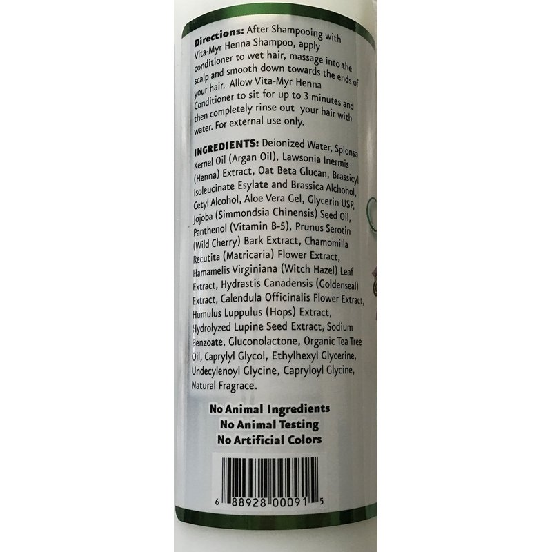 Transform your hair care routine with VITA-MYR Henna Shampoo, a specialized formula designed to enhance & protect your vibrant hair color while providing nourishment & strength. Experience the power of henna, a natural botanical ingredient known for its ability to enhance color & promote healthy hair growth. Our Henna Shampoo is meticulously crafted with a unique blend of henna extract, botanicals, & conditioning agents to cleanse & revitalize your hair. It gently removes impurities, while the henna extract works its magic, intensifying your hair color & adding a brilliant shine. Experience the ultimate care and nourishment for your colored hair with VITA-MYR Henna Conditioner. This luxurious conditioner is specifically formulated to enhance and protect your hair color while providing deep hydration and restoring its natural vitality. Unleash the transformative power of henna and indulge in the beauty of vibrant, lustrous locks. Our Henna Conditioner is carefully crafted with a potent blend of henna extract, botanicals, and conditioning agents to deliver intense color protection, moisture, and strength. It helps prolong the life of your hair color while leaving your hair soft, silky, and radiantly beautiful.