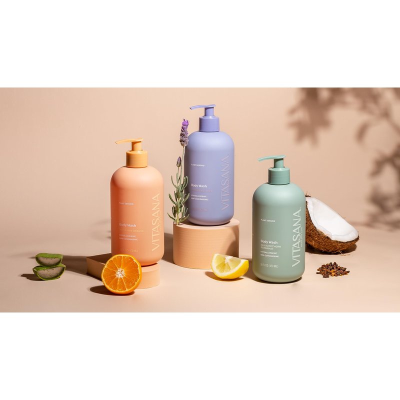 This luxurious body wash is formulated with plant derived ingredients and extracts that leave skin feeling clean and hydrated. It is 98.9% Naturally Derived and free of any harsh ingredients, chemicals, artificial colorings and toxins. Vitasana products are EWG Verified, Plant-Based, Cruelty-Free, Paraben-Free, Petroleum-Free and Sulfate-Free. Vitasana= Healthy Life