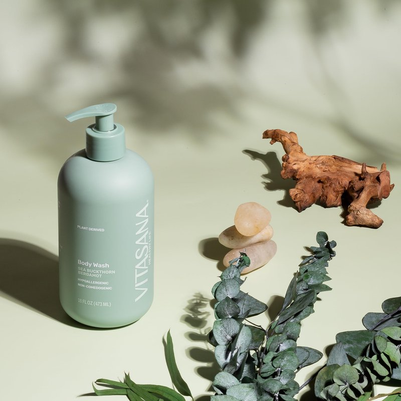 Vitasana Body Wash, EWG Verified, Plant Derived, Hypoallergenic, Paraben-Free, Sulfate-Free, Petroleum-Free, Cruelty-Free, Sea Buckthorn/Bergamot, 16oz