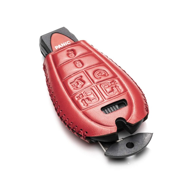 Vitodeco Genuine Leather Smart Key Fob Case Cover Protector with Leather Key Chain Compatible for 2013 - 2020 Dodge Grand Caravan (7-Button, Red)