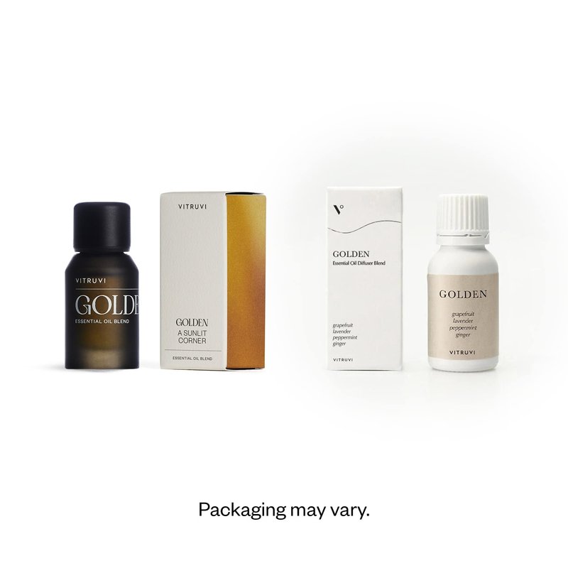 Golden is bright and cozy. Blended with Grapefruit, Lavender, Peppermint, and Ginger, it’s inspired by the feeling of basking in sunlight. Golden is best diffused any time of the day—it’s your new go-to for feeling good.