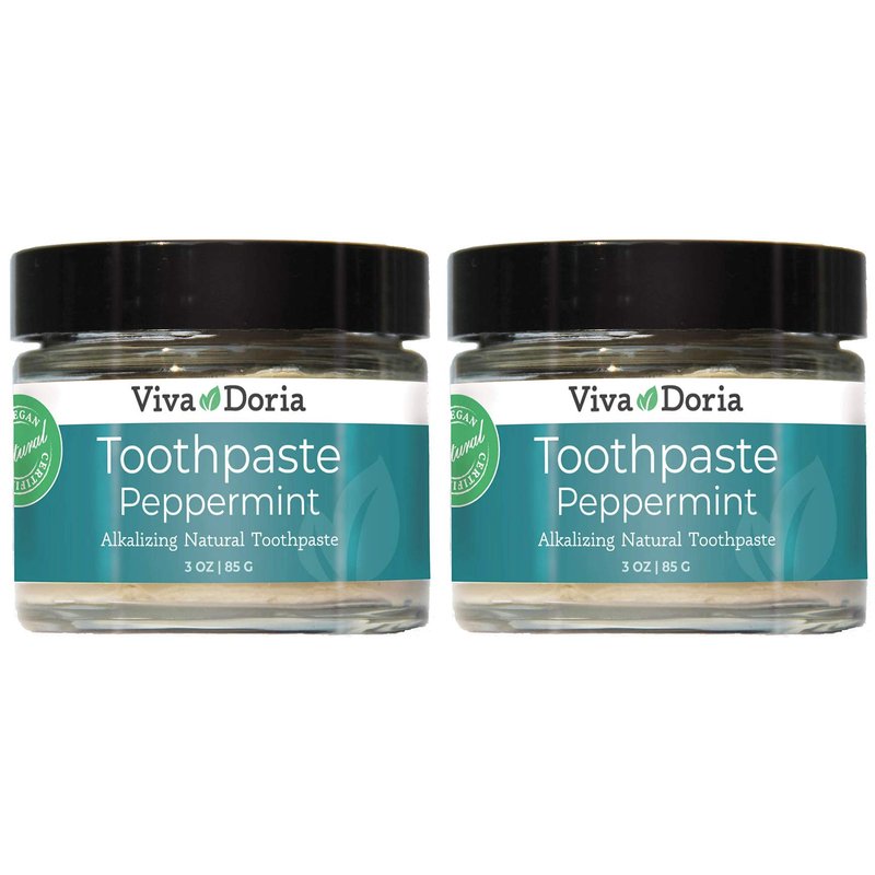 Viva Doria Remineralizing Toothpaste Peppermint | Natural Whitening Toothpaste | Fluoride Free Toothpaste, 3 Oz Glass Jar, 2 Pack