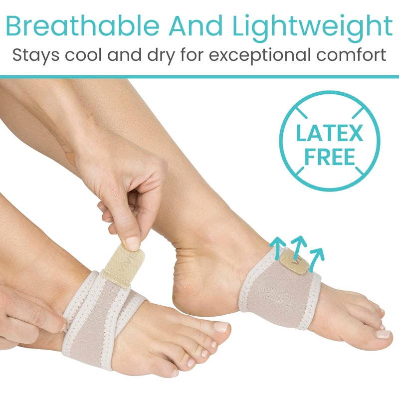 - LIGHTWEIGHT AND BREATHABLE: The lightweight arch support does not add bulk to your foot, easily fitting in most shoes. Constructed with a breathable, latex-free material, the brace also remains cool and dry throughout the day for exceptional comfort.