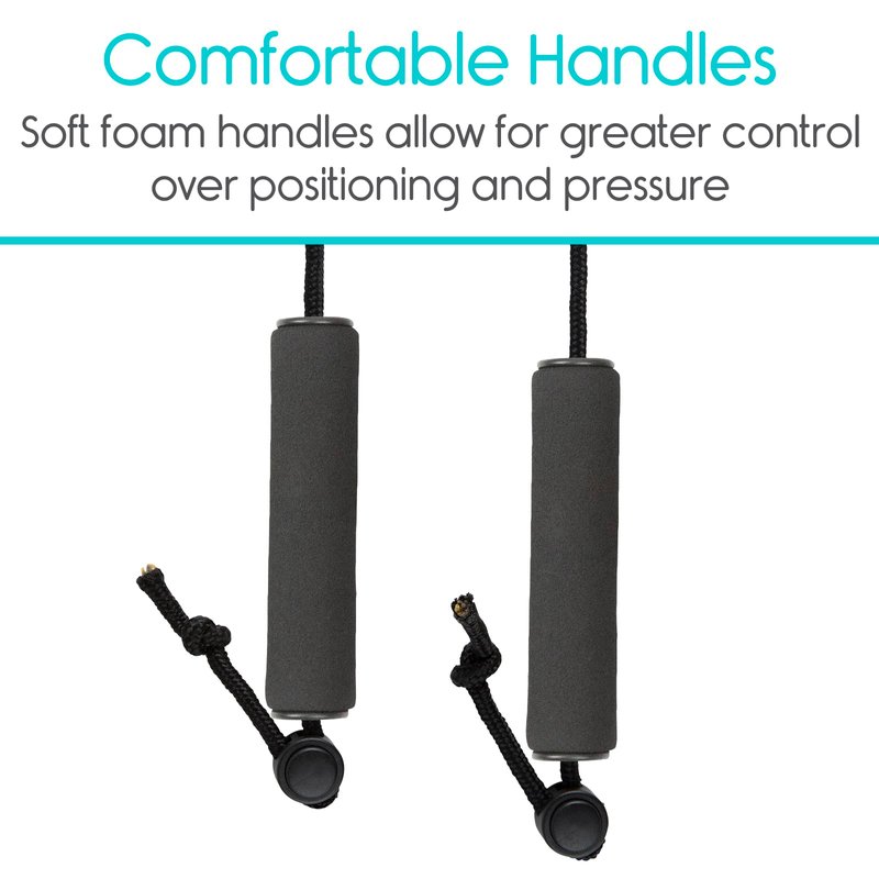 - INTEGRATED HANDLES FOR GREATER CONTROL: Integrated, multi-position foam handles allow you to control the amount of pressure that is applied for comfortable relief from foot pain. They will also allow you to to effectively target painful areas.. Each handle cord is adjustable for ease of use, whether seated or standing.
