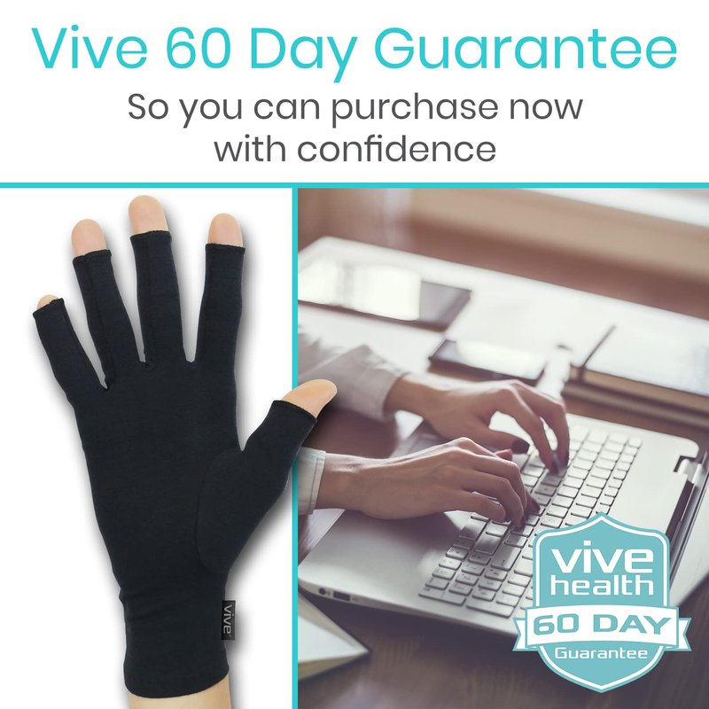 - SOOTHING COMPRESSION THERAPY: Embracing the natural shape of each hand, the Vive arthritis gloves are form-fitting, providing therapeutic compression to relieve pain, stiffness and inflammation. The soft compression gloves soothe sore, aching tendons, muscles and joints to effectively relieve arthritis pain by reducing stress on pressure points in the fingers, hands and wrists.