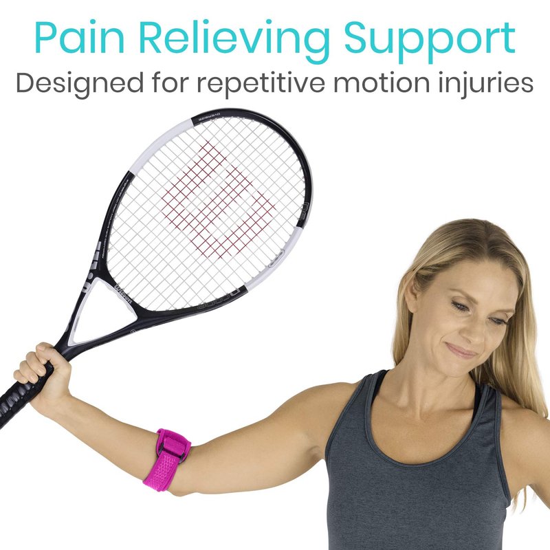 - EFFECTIVE TENNIS ELBOW PAIN RELIEF: Providing targeted compression, the tennis elbow brace supports the elbow and forearm to relieve painful tendonitis in the elbow and muscle fatigue. Great for relieving tennis elbow, golfer’s elbow, epicondylitis carpal tunnel syndrome and arthritis, the brace is also useful for activities that often result in elbow hyperextensions such as basketball, volleyball and weightlifting.