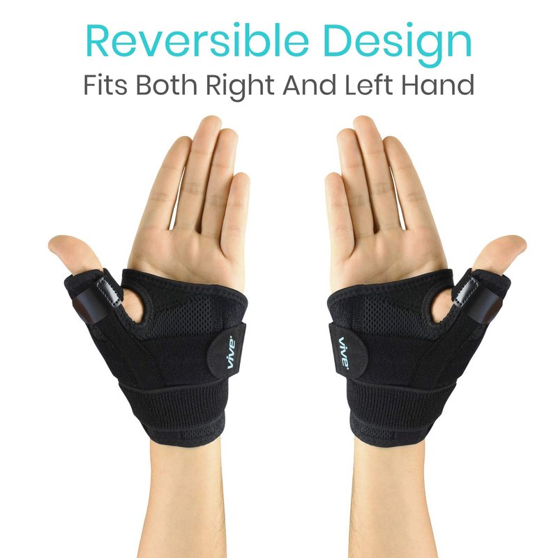 - STABLE SUPPORT FOR THUMB: Supporting the thumb joints and ligaments, the Vive thumb brace restricts the movement of the thumb while supplying adjustable compression and retaining therapeutic heat to improve circulation and promote healing. The lightweight brace allows the full use of the remaining fingers so you can complete daily tasks with ease.