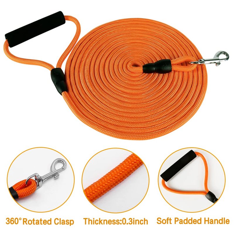 - 20 FT DOG LEASH - Our long leash is 0.3inch thick and 20 feet long, giving your dog more freedom while still keeping them on the leash, perfect for outdoor recall training, park, yard, hiking and camping