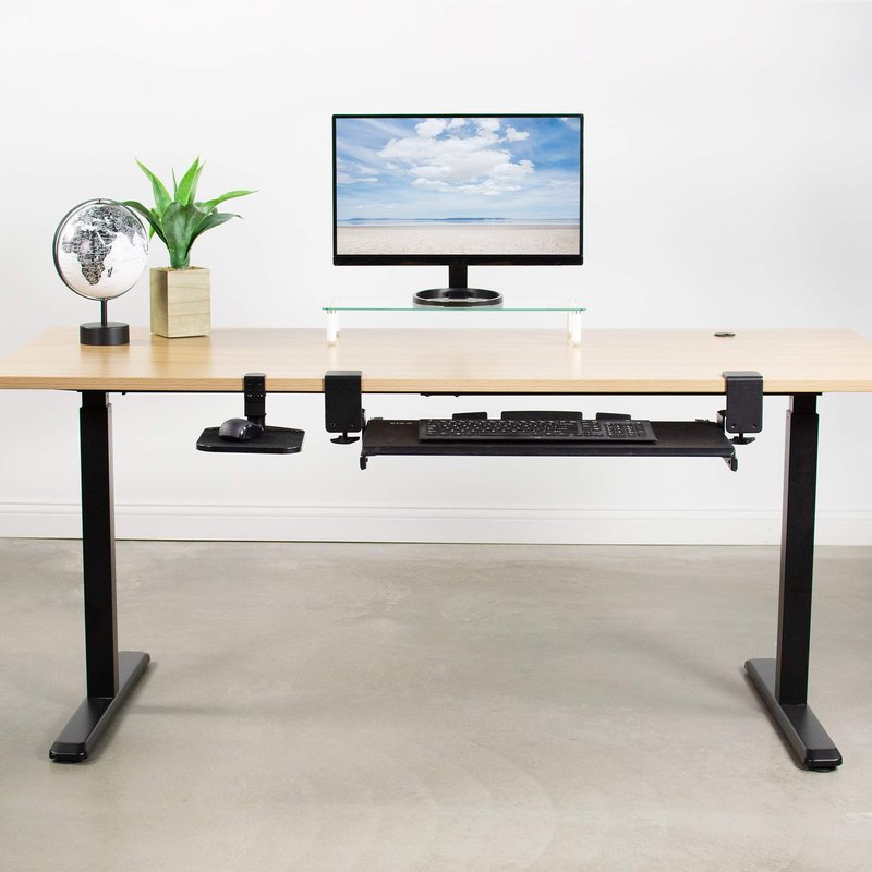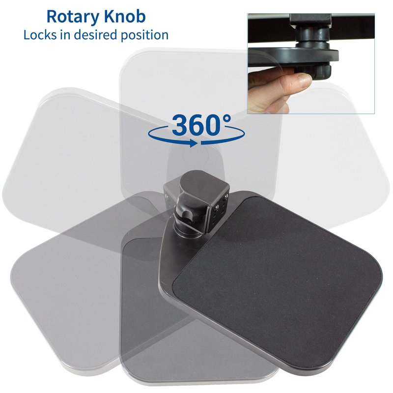 Click away in comfort with Desk Clamp Mouse Pad (MOUNT-MS01A) from VIVO! This adjustable 9.8” x 7.7” platform creates ergonomic angles for your wrist and provides additional space for your mouse and other small items. Elegant black fabric lines the top surface for optimal comfort and traction. The sturdy desk clamp attaches to any surface up to 2” in thickness for versatile placement, fitting regular office desks, tabletop risers, and more. The clamp also makes it easy to mount and unmount the mouse pad with no damage to your existing desk. Designed for both right-handed and left-handed users, this product accommodates your dominant hand with ease. Full 360° rotation means flexible placement for your wrist, as well as easy storage by rotating the tray under the desk surface when not in use. Minimal assembly is required out of the box, and all necessary hardware and instructions are provided to get your new mouse pad improving work processes in no time!