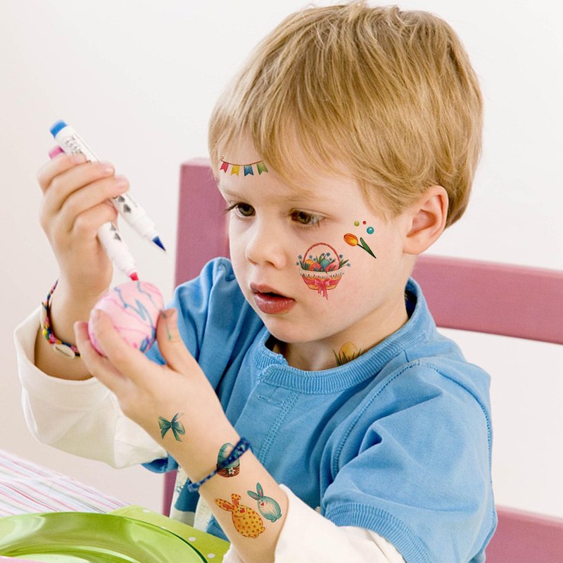 - Easy to Use: Our Easter tattoo stickers can easily transfer with water. Our Easter temp tattoos are safe, waterproof and party tested and they can last 3-5 days. Also easy to remove with baby oil or alcohol.