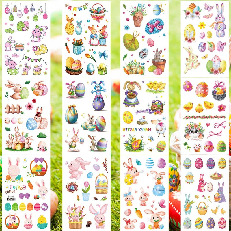 - What You Get: 12 sheets glitter Easter bunny tattoos for kids(2.95"x4.72"/Sheet). VIWIEU 180-Day worry-free Replacement and any questions will be responded in 24 hours.