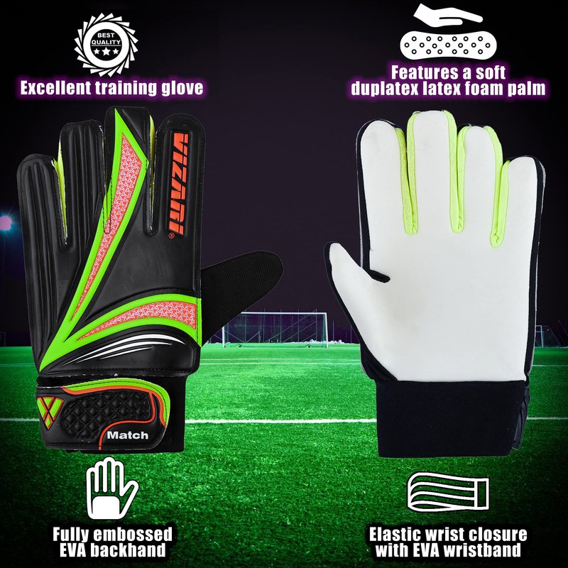 Vizari Junior Keeper Glove - Professional Soccer Goalkeeper Goalie Gloves for Kids and Adults - Superior Grip, Durable Design, Secure Fit|Black/Orange/Green 4