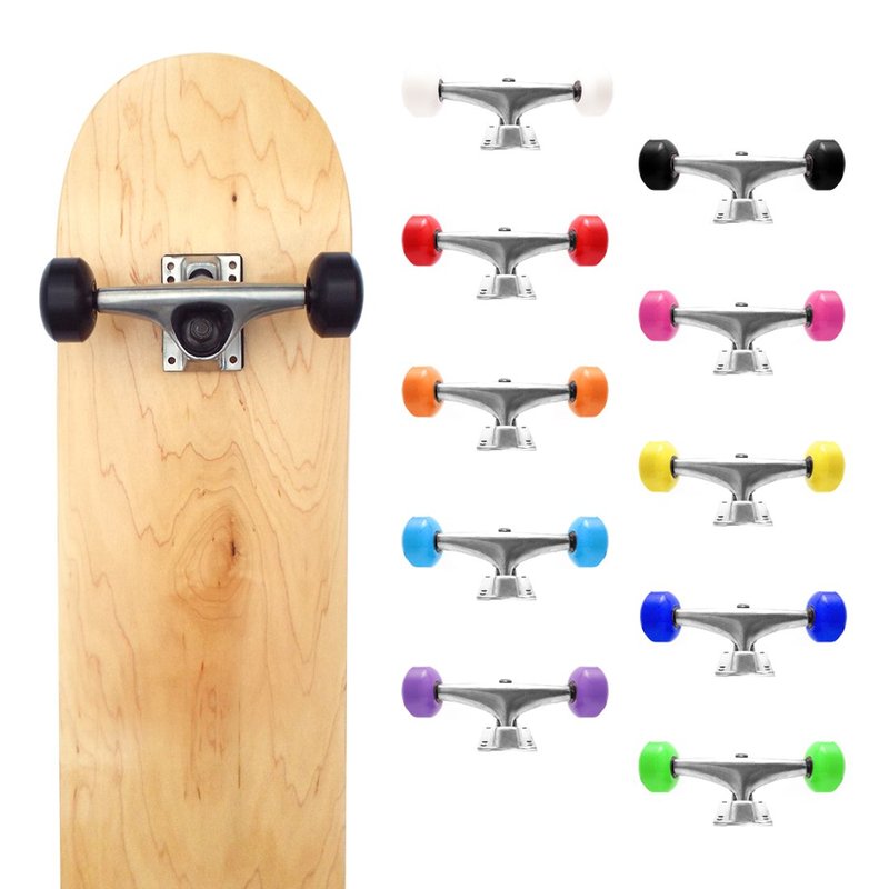 - SKATEBOARD PARTS SET: It includes skateboard trucks 5.0, skateboard wheels, skateboard bearings Abec 7, skateboard screws 1", skateboard riser pads 2mm, skateboard spacer