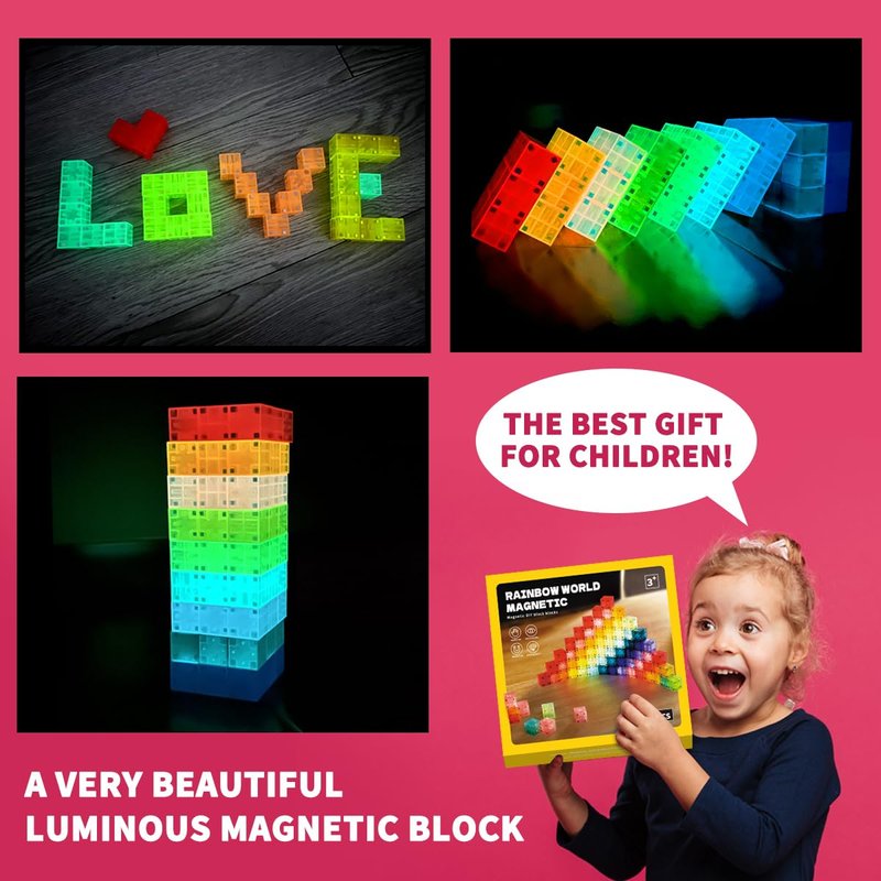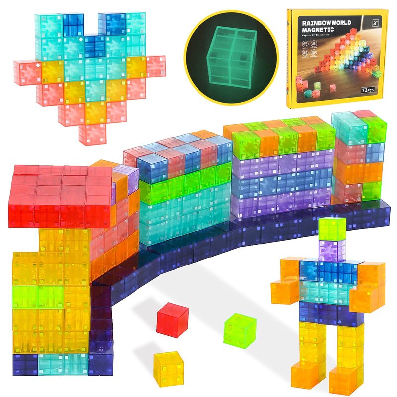 - 【Magnetic Blocks Noctilucent】 The newly upgraded magnetic building blocks (72 pcs) are composed of a variety of colors, which can bloom a strong sense of color after turning off the lights at night, bringing unlimited fun to children.