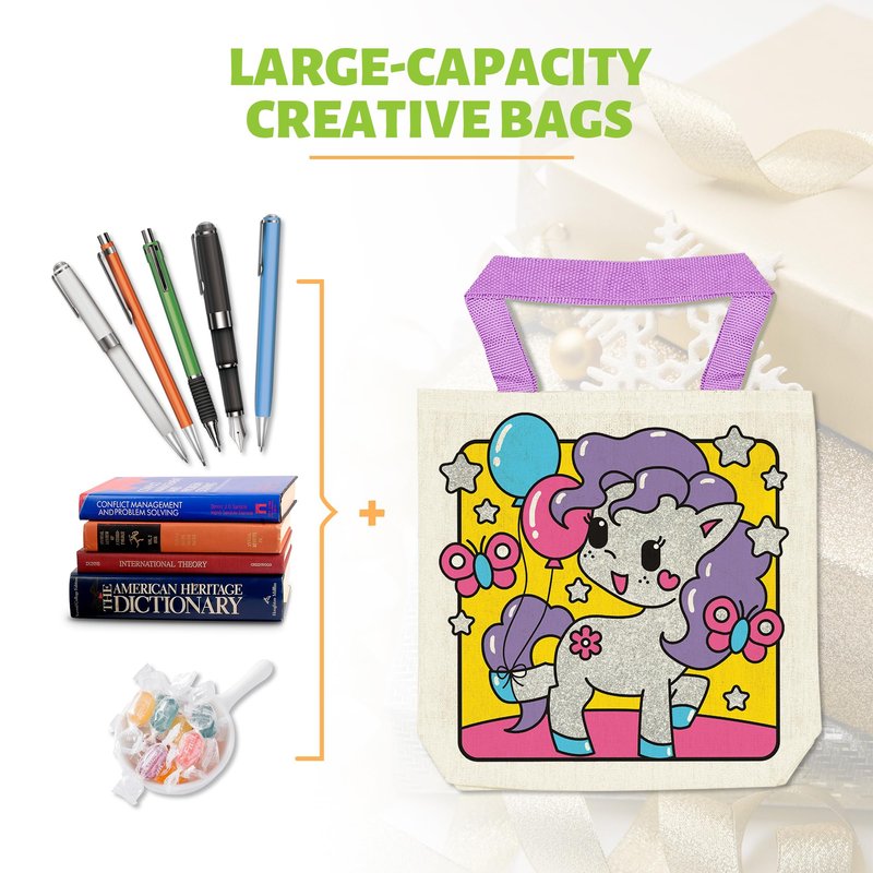 VKPI 8 Pieces Kids Coloring Goodie Bags, Reusable Canvas Bag, Cute Art Party Favors, Color Your Own Bags for DIY Painting Birthday Carnival Celebration, Party Supplies Gift, Girls