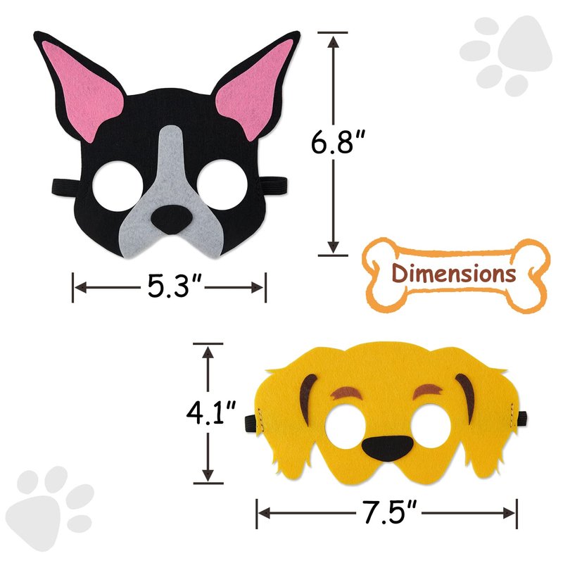 - PREMIUM QUALITY MATERIALS: Our dog themed party favors masks are made with high-quality materials and clean cut that are both durable and environmentally friendly, non toxic, non smell and reusable. Enjoy dressing and let's create an unforgettable memory!