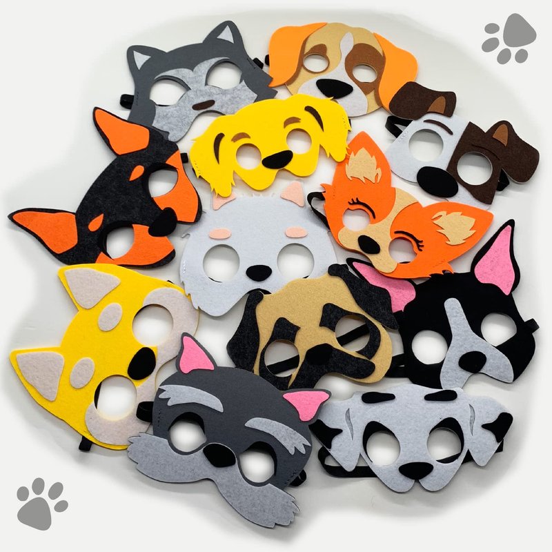 - A PACKAGE OF DOG FRIENDS: You can find 12 felt masks of dogs, including Labrador, Husky, French Bulldog, Husky, German Shepherd, Samoyeds, Golden Retriever, and many more. Ready to serve as puppy party favors for 12 people!