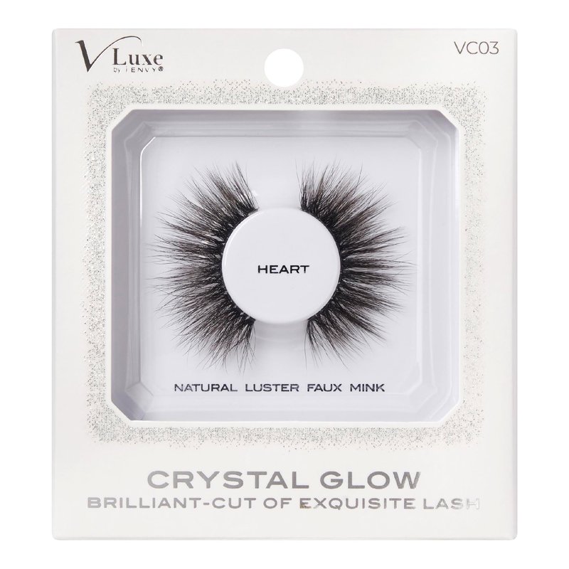 VLuxe Crystal Glow False Eyelashes, Natural Luster Faux Mink Fake Eye Lash with Special Cut, Luminous Shine & Subtle Sparkle for Stunning Natural Look (Heart)