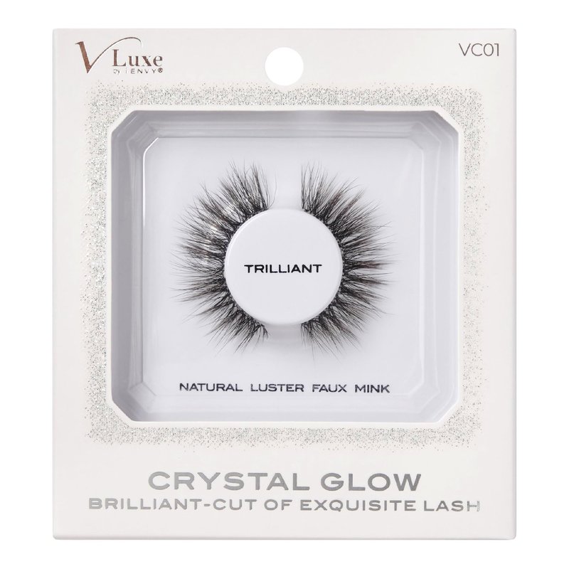 VLuxe Crystal Glow False Eyelashes, Natural Luster Faux Mink Fake Eye Lash with Special Cut, Luminous Shine & Subtle Sparkle for Stunning Natural Look (Trilliant)